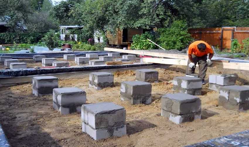 веранда должна равномерно опираться на фундамент, для этого важно разместить все опоры на одном уровне, чтобы защитить их от влаги воспользуйтесь битумной мастикой и рулонным гидроизолятором.