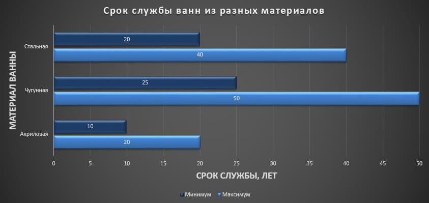 Ванна из качественного акрила стоит достаточно дорого, а ее срок службы в 10-20 лет делает это финансовое вложение еще менее оправданным.