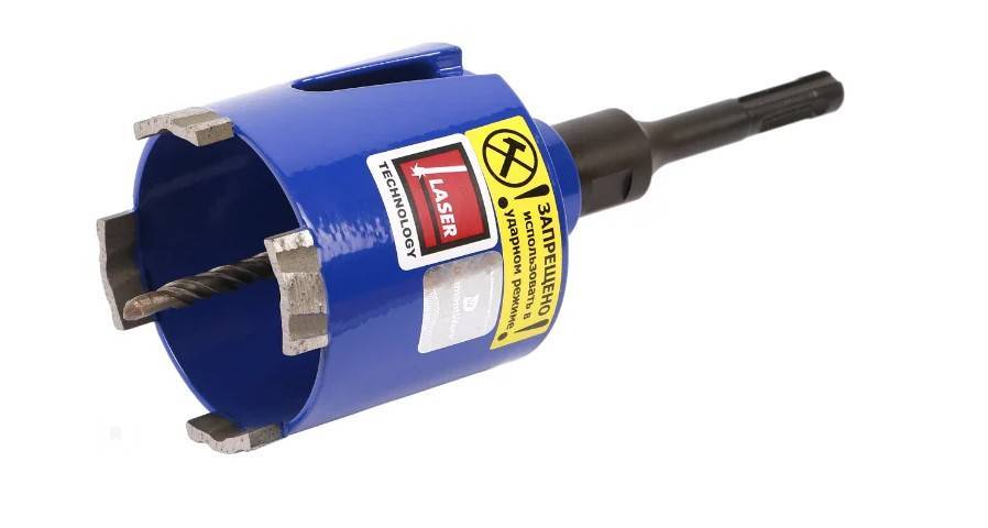 Корончатые сверла по своим внешним параметрам сходны с предшествующими стальными аналогами. Установка также имеет вид металлического цилиндра, в котором один край представлен режущими элементами, а другой – хвостовиком для прикрепления к инструменту, выступающего в роли привода.