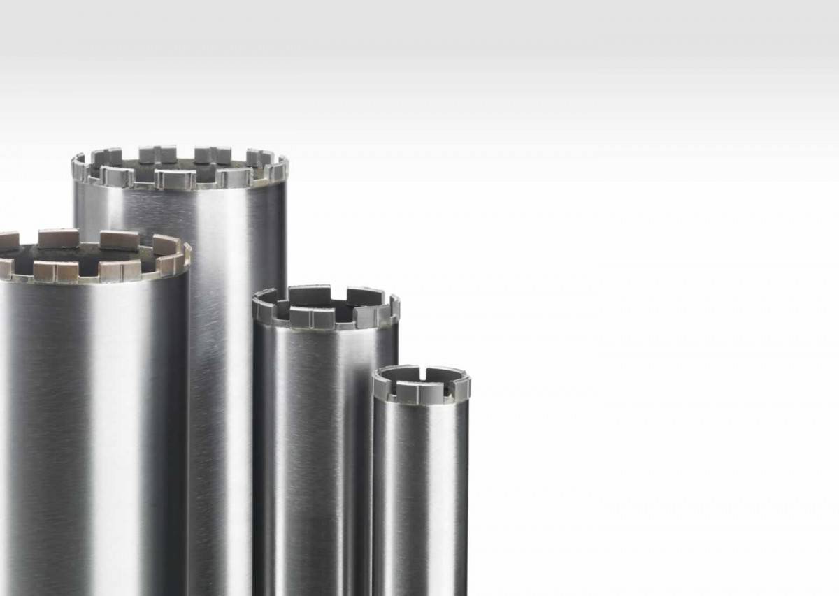 Нижняя часть алмазных коронок имеет ровную кромку, на которых промышленным путем произведено алмазное напыление. Это позволяет пробуривать отверстия даже в армированном бетоне.