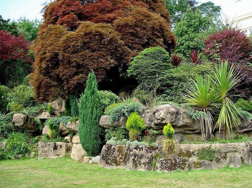 Полезный совет! Чтобы композиция выглядела природной, выбирайте для рокария состаренные дикие камни без свежих сколов.