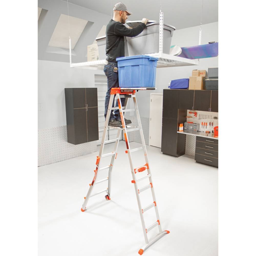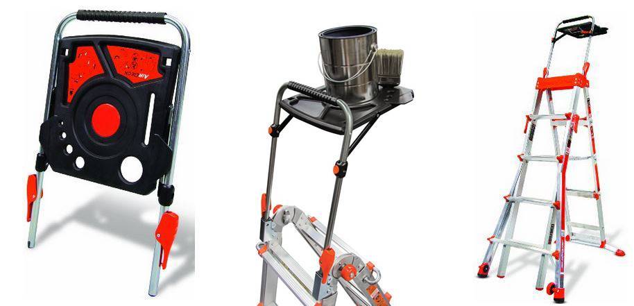 - Стремянка-трансформер. Имеет сложную шарнирную конструкцию, что позволяет использовать приспособление и как обычную приставную лестницу, и как стремянку, и как подмости.
