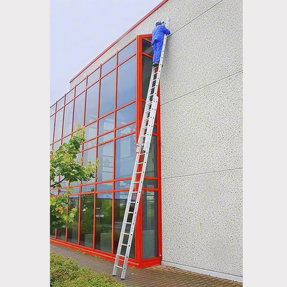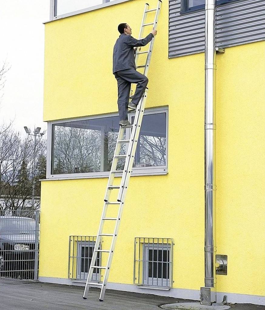 Тросовая тяга и фиксаторы позволяют оперативно разобрать трехсекционную лестницу на нужную высоту (максимум – 10,58 м). Наличие механизма предопределяет ее профессиональное использование. Учитывая самую дорогую стоимость в рейтинге, ALUMET 3315 в качестве инвентаря для дома мало кто станет рассматривать. Она больше подходит для проведения внешних работ по монтажу, в строительстве, а также может использоваться спасательными или пожарными бригадами, давая возможность забраться на крышу трехэтажных домов или балконы. Благодаря алюминиевому профилю весит самая длинная лестница всего 38,7 кг. При этом высота одного пролета составляет 4,4 м, что следует учитывать при транспортировке.