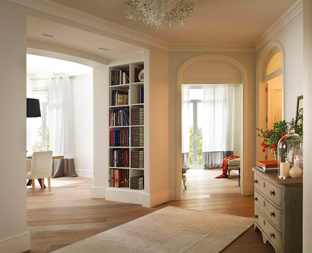 Многие предпочитают такой вариант за его мягкость, отсутствие острых углов, это делает переходы между комнатами более незаметными. Идеально вписывается арка при выходе в холл, если он достаточно широкий, перемещение между помещениями будет незаметным.