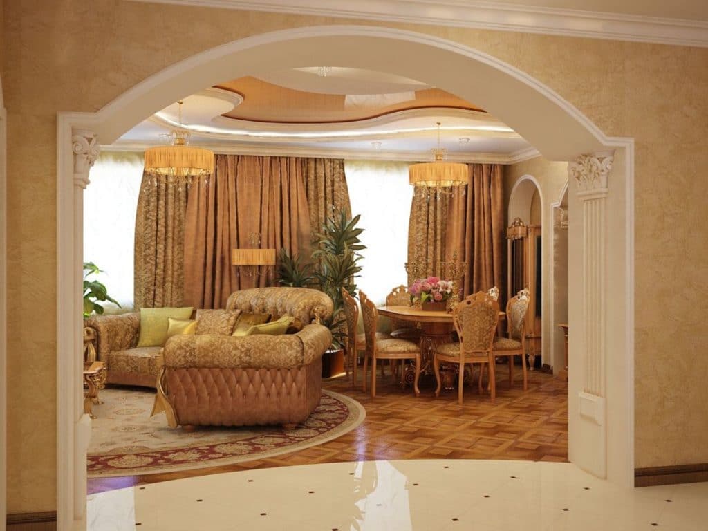 Классические интерьеры можно оформить с помощью купольной арки