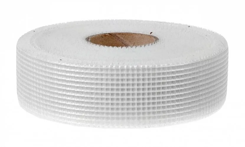2. Серпянка. Так называется самоклеящаяся сетка, продаваемая в рулонах с шириной полотна 45-50 мм и его длиной в 20, 45 или 90 м. Состоит серпянка из стекловолокна, с внешней стороны покрыта составом для наклеивания, поэтому не требует покупки клея.