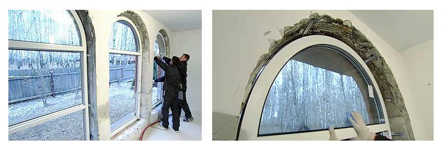 В установке арочного окна следует придерживаться рекомендаций ГОСТ по монтажу окон (см.: монтаж пластиковых окон по ГОСТ). Установке арочного окна в деревянном доме должна предшествовать более серьезная подготовка проема (см.: установка пластиковых окон в деревянном доме).
