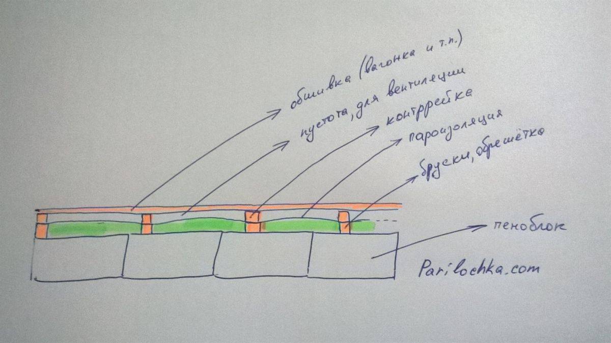Утепление стены бани из пеноблока включает в себя пароизоляцию, подробности смотрите здесь.