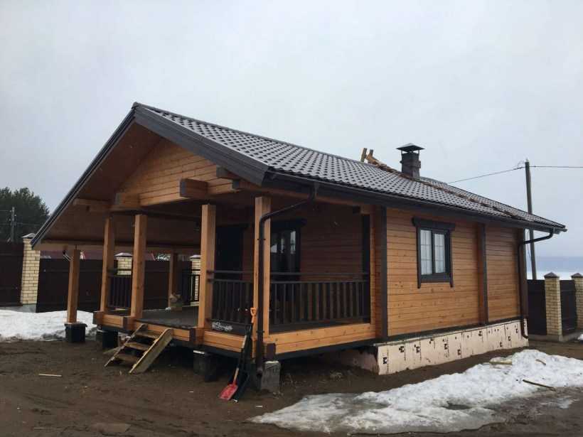 | Баня с верандой на всю длину одной из стен дома. | Удобный вариант для тех, у кого большая семья или остается на ночь много гостей. На вместительной веранде можно оборудовать спальню и маленькую кухню. |