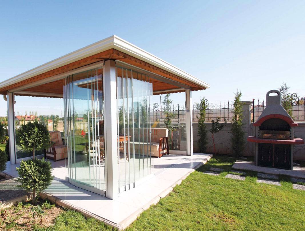 Вариантов здесь достаточно, потому с выбором не возникнет никаких проблем. Но, требуется рассматривать наравне с сильными сторонами, также, недостатки, чтобы избежать осложнений в эксплуатации. Способы бывают полными или частичными. Частичным называется остекление строений с глухими стенами. Этот вариант недорог и доступен для замены отдельных деталей, если потребуется. Недостатки же заключаются в дефиците эстетичности и не очень хорошем обзоре. При панорамном способе остеклению подлежат все три стены, а также, в отдельных вариантах, кровля. Это обеспечивает отличный обзор. Минус – высокая цена этого вида оформления.