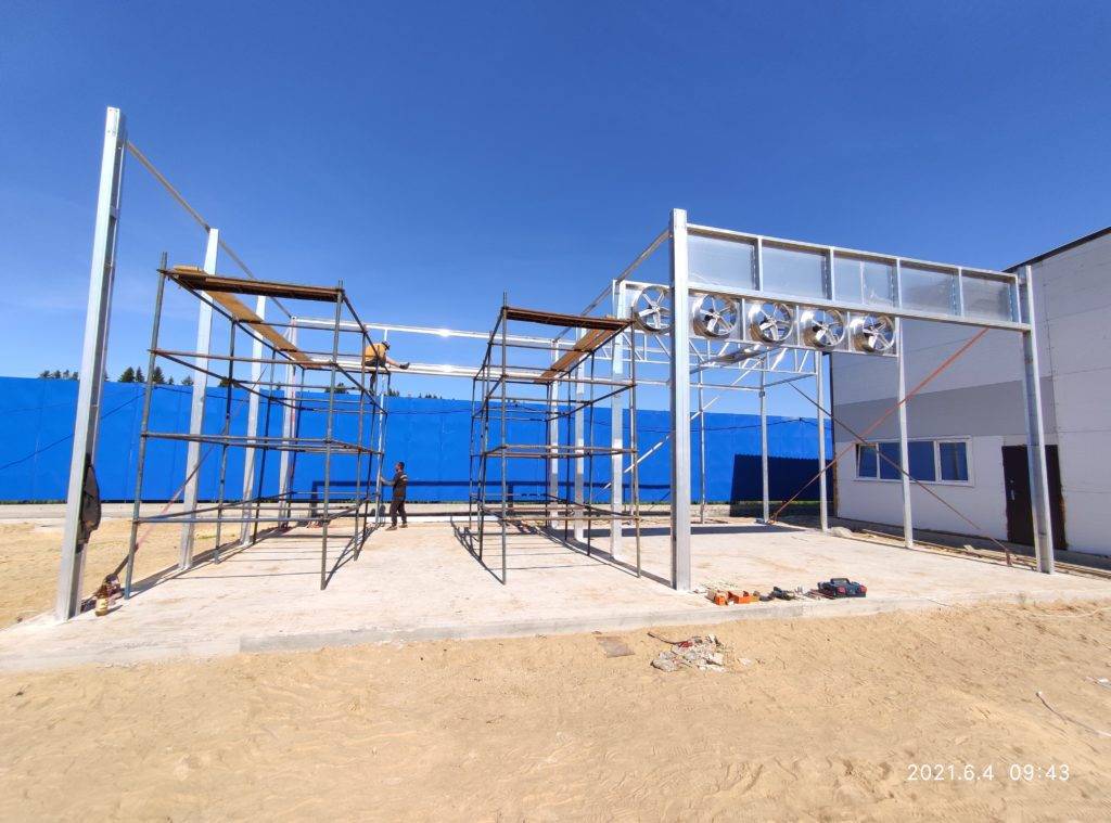 Основа камер состоит из устойчивых секционных алюминиевых рам с большим количеством ферм, что позволяет выдерживать серьёзные снеговые и ветровые нагрузки. Сотовая конструкция панелей с поддерживающими профилями препятствует оседанию утеплителя. Все стыки герметизируются специальным промышленным силиконом.