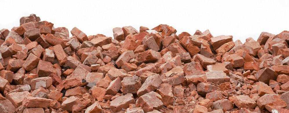 - Битый кирпич образуется при разборке старых построек методом разбивания гидравлическим молотом стен здания. В этом случае получаются большие фракции, состоящие из нескольких кирпичей, фиксируемые застывшим бетонным раствором. Такой строительный материал стоит недорого, а если его переработать в дробилках, то можно продать дороже.