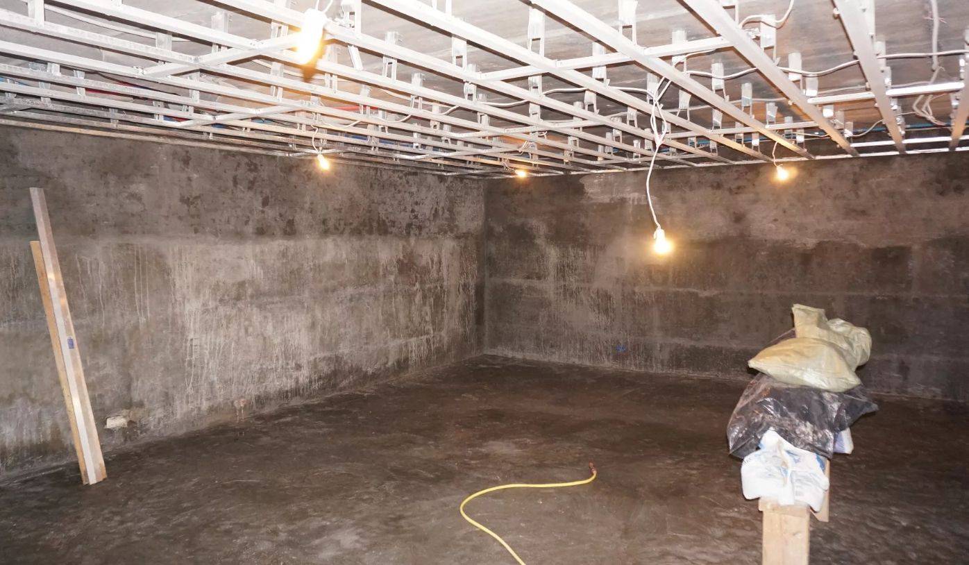 - Если в заглублённом этаже нет на полу бетонной стяжки, то дальнейшим этапом будет устройство пола по грунту. Параллельно необходимо выполнить качественную гидроизоляцию, даже если помещение вполне сухое.