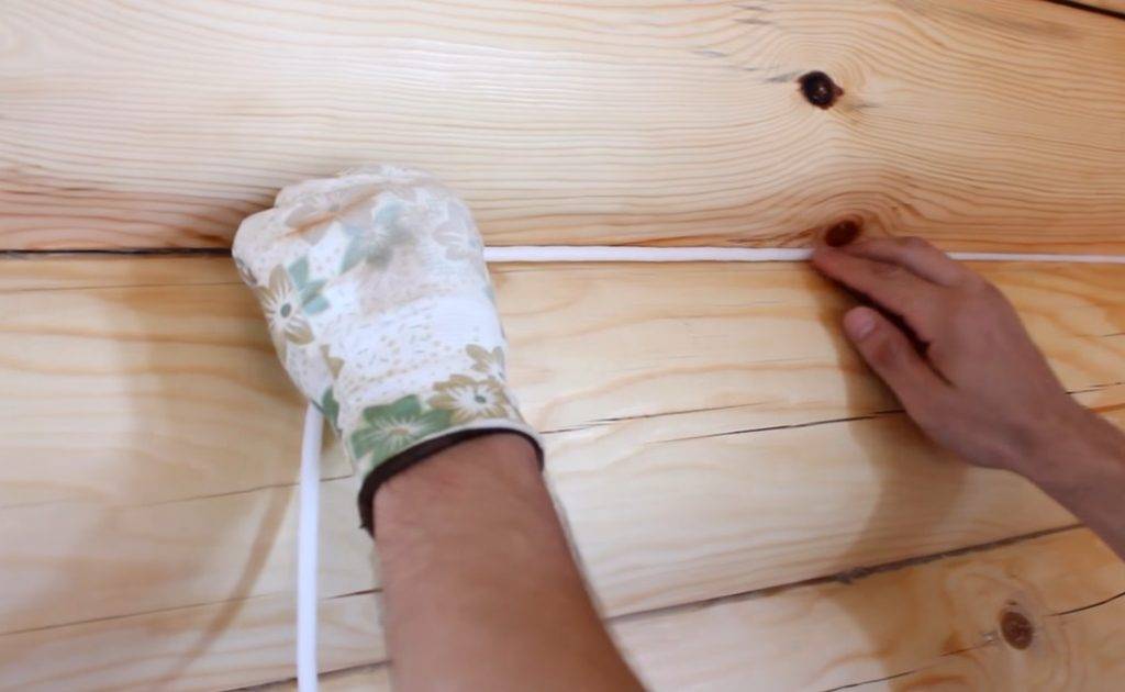 Технология теплый шов заключается в герметизации швов и стыков между брёвнами или брусьями. Утепление бревенчатого дома изнутри с помощью этой технологии проводится с помощью силиконового или акрилового герметика. Иногда используется пакля, льняная вата.