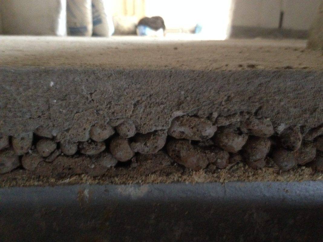 Как только цемент застынет, пласт керамзита получает устойчивость, по нему могут ходить рабочие, перемещая легкие механизмы и не разрушая целостность слоя. Появляется возможность легко и уверенно заливать стяжку, не опасаясь того, что отдельные гранулы «всплывут».