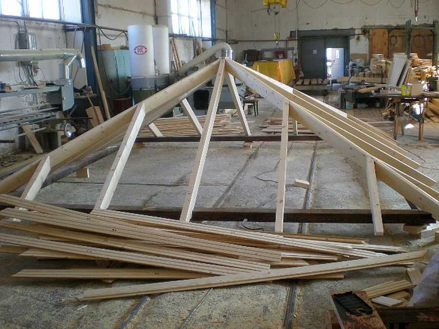 Размер диагональных стропил обычно больше чем размер стандартных досок и бруса, чтобы получить необходимую длину, исходный материал сращивают, а под местами соединений устанавливают подпорки.