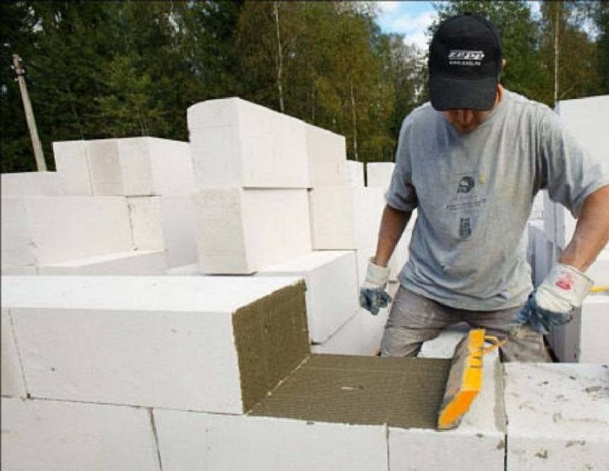 Стены из пеноблока возводятся в три раза быстрей, чем из кирпича