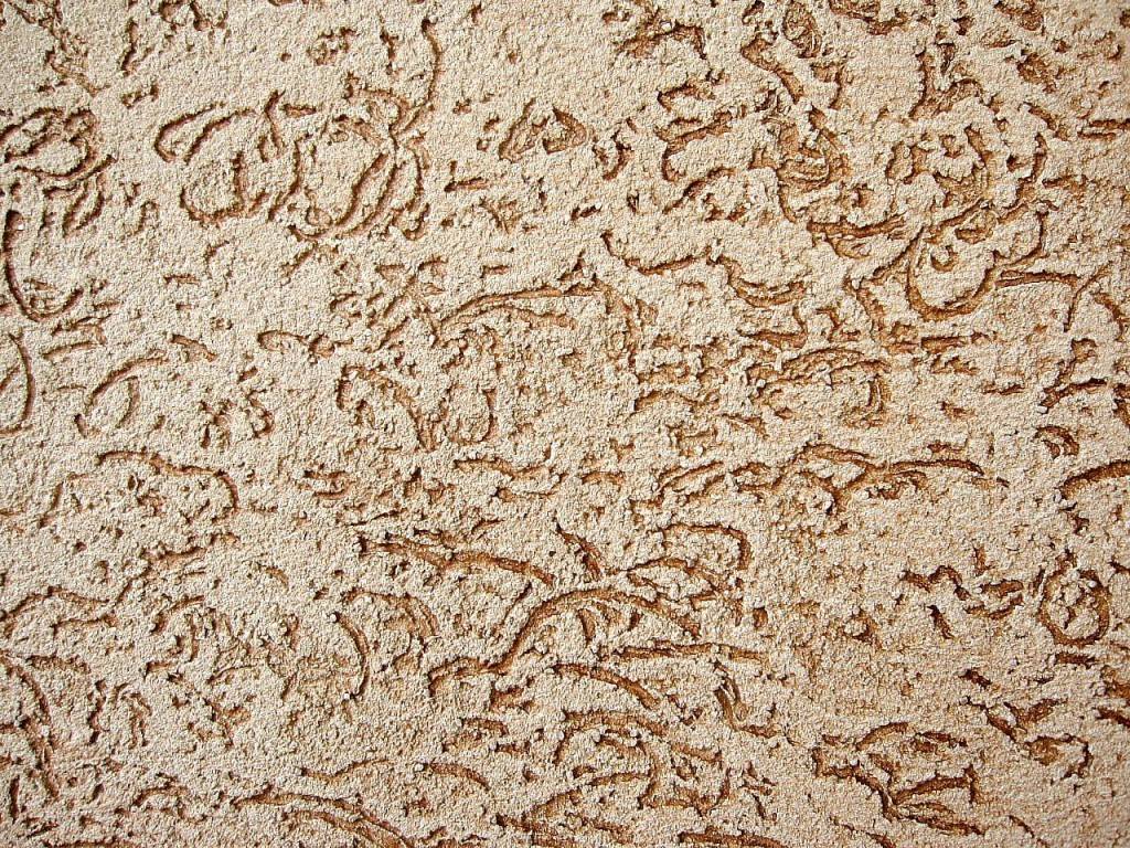 К таким относится, например, «короед». Называется он так за схожесть с изъеденной жуком древесиной. В смесь добавлены разные по размеру гранулы. Мелкие служат наполнителем, а за счет крупных, выступающих над поверхностью, образуется рисунок. Поэтому толщина борозд ограничена размером крошки. Смеси с крупными частицами больше подходят для фасадов, для гостиных лучше использовать мелкую фракцию. Вариации не ограничиваются завитками, процарапать можно прямые полосы: горизонтальные, вертикальные или расположенные крест-накрест.