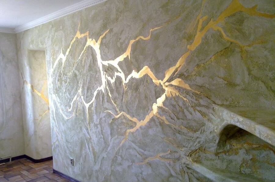 Самая распространенная и узнаваемая декоративная штукатурка. Рельеф у такого покрытия способен формироваться сам при нанесении. Это происходит за счет крупных фактурных частиц: камней, ракушек, растительных волокон. От того, насколько глубокий рисунок, зависит игра света и тени. Продуманная подсветка может сделать шедевр из самого простого узора.