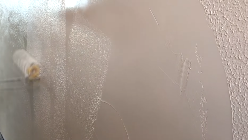Шаг 7. На получившейся фактуре могут остаться слишком острые углы. Сглаживаем их слегка влажным валиком, когда смесь на стене чуть подсохнет.