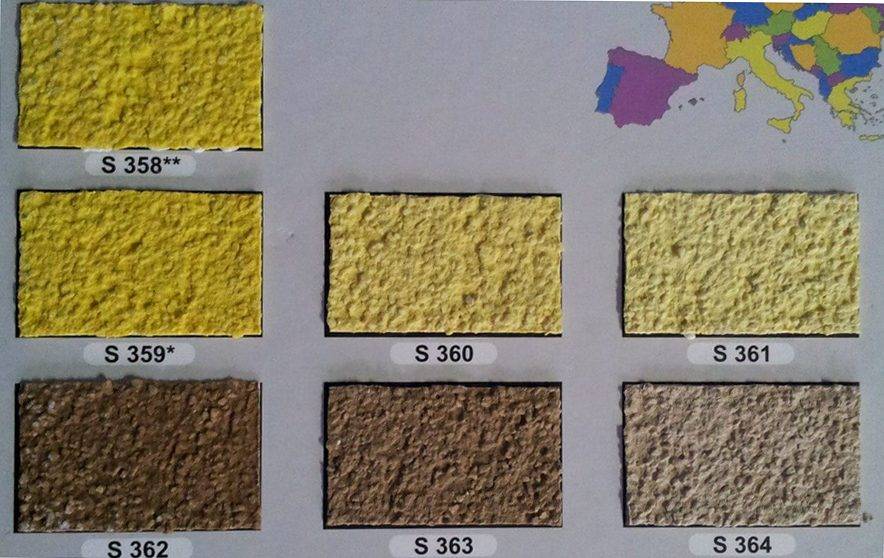Отделочный материал имеет разную зернистость и структуру, поэтому при выборе нужно учитывать, какую фактуру вы хотите получить. Именно поэтому штукатурку нужно приобретать с запасом, так как даже у одного производителя разные партии могут немного отличаться между собой.