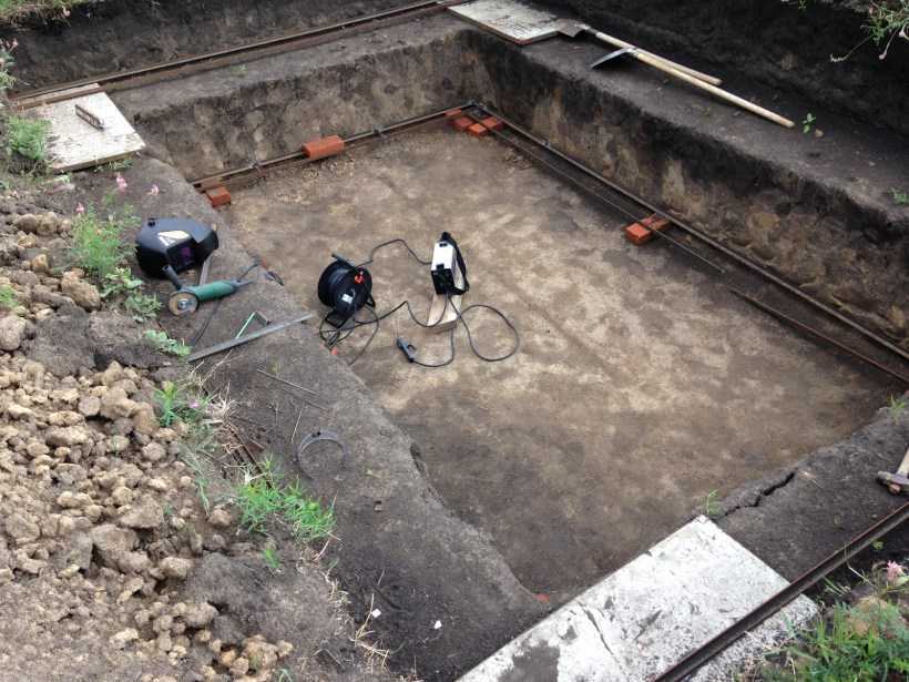 Снимите поверхностный слой почвы, удалив террасы на глубину 30 см и ширину 20 см, и выкопайте основное углубление.