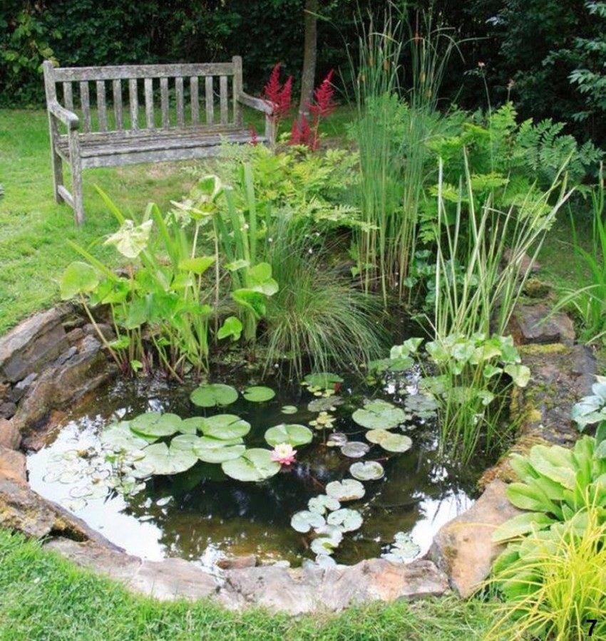 Размеры водоёмов бывают разные. Для небольшого участка установите ёмкость на 10 литров. Он не будет пересыхать, займёт немного места и позволит сделать двор эстетичным. Но выращивание растений и разведение рыбы в нём невозможно. Для него подойдёт старая ванна, пластиковая ёмкость, тазик. После выбора места вам следует выкопать яму, глубиной на 30 см больше высоты используемой ёмкости. Выровняйте и уплотните дно ямы, опустите ванну в неё, засыпав землёй свободное пространство.