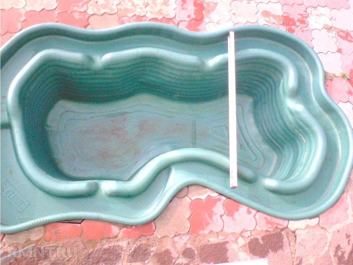 Выбирая жёсткую ёмкость для создание пруда общей площадью до 4 м2, стоит остановиться на ванне из стекловолокна или пластика. Минимальная глубина такой ёмкости должна составить около 800 мм — вода в таком пруду будет равномерно прогреваться летом, а зимой не будет промерзать до дна.