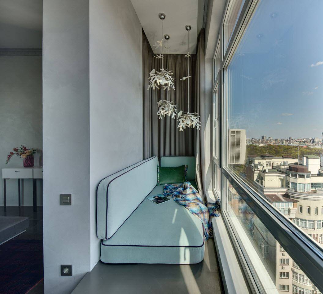 С целью практичности можно разместить на лоджии сразу несколько зон, например оборудовать небольшую, но комфортную рабочую зону и обязательно удобное кресло, а в противоположном углу разместить раскладной диван для свободного времяпровождения и отдыха.