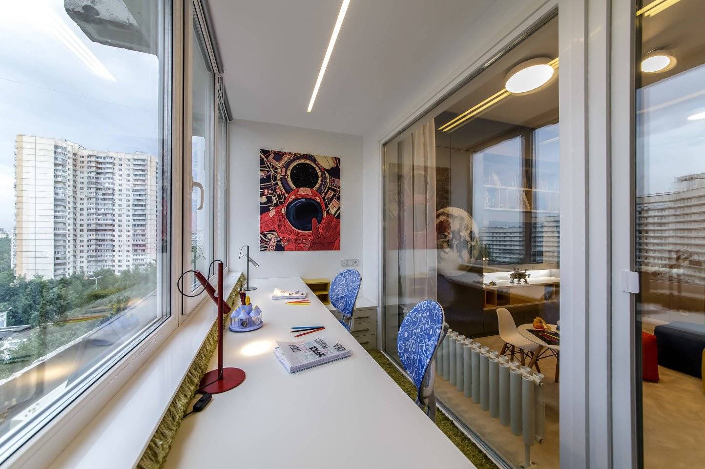 Установив столешницу по всей длине балкона вы получаете место для занятий, творчества и игр