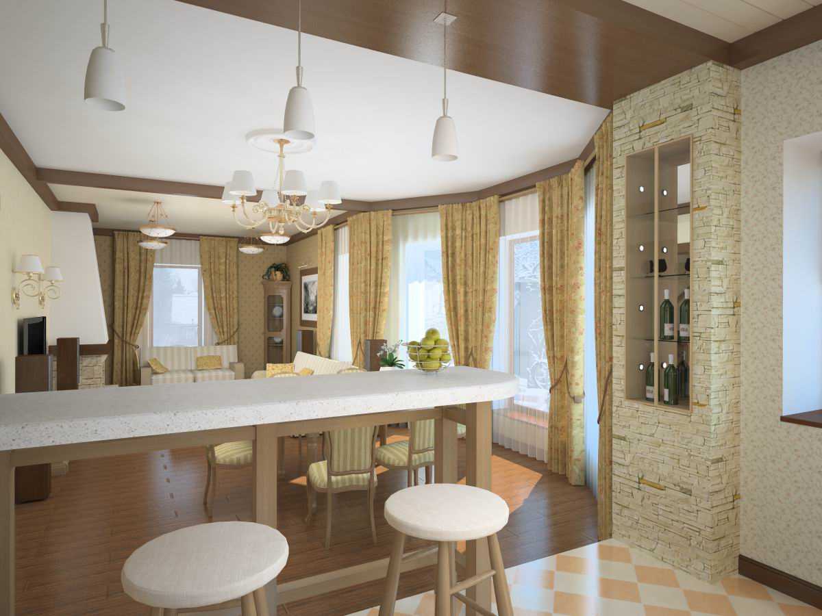 Классическая кухня, совмещенная с гостиной есть и будет находиться вне времени, что подтвердят эти фото.