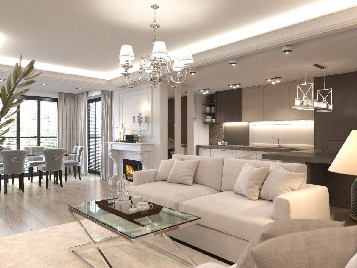 Классический интерьер хорошо смотрится в просторных помещениях. Изысканные предметы мебели выглядят стильно при хорошем искусственном и естественном освещении.