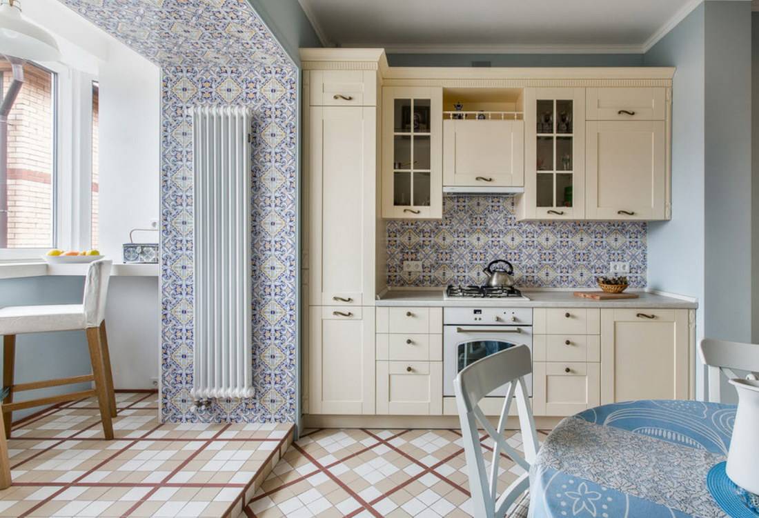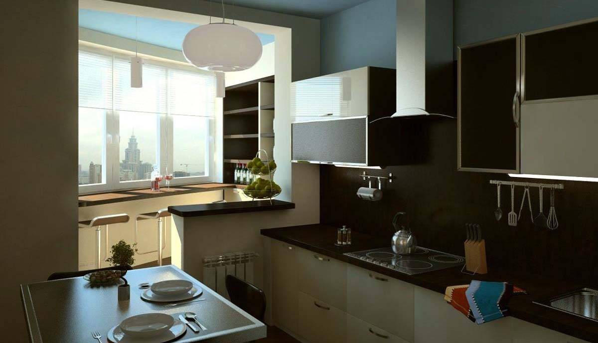 При планировке кухни с выходом на балкон специалисты рекомендуют снести полностью или частично разделительную стену. Такое решение позволит увеличить комнату и организовать на балконном пространстве полноценную столовую.