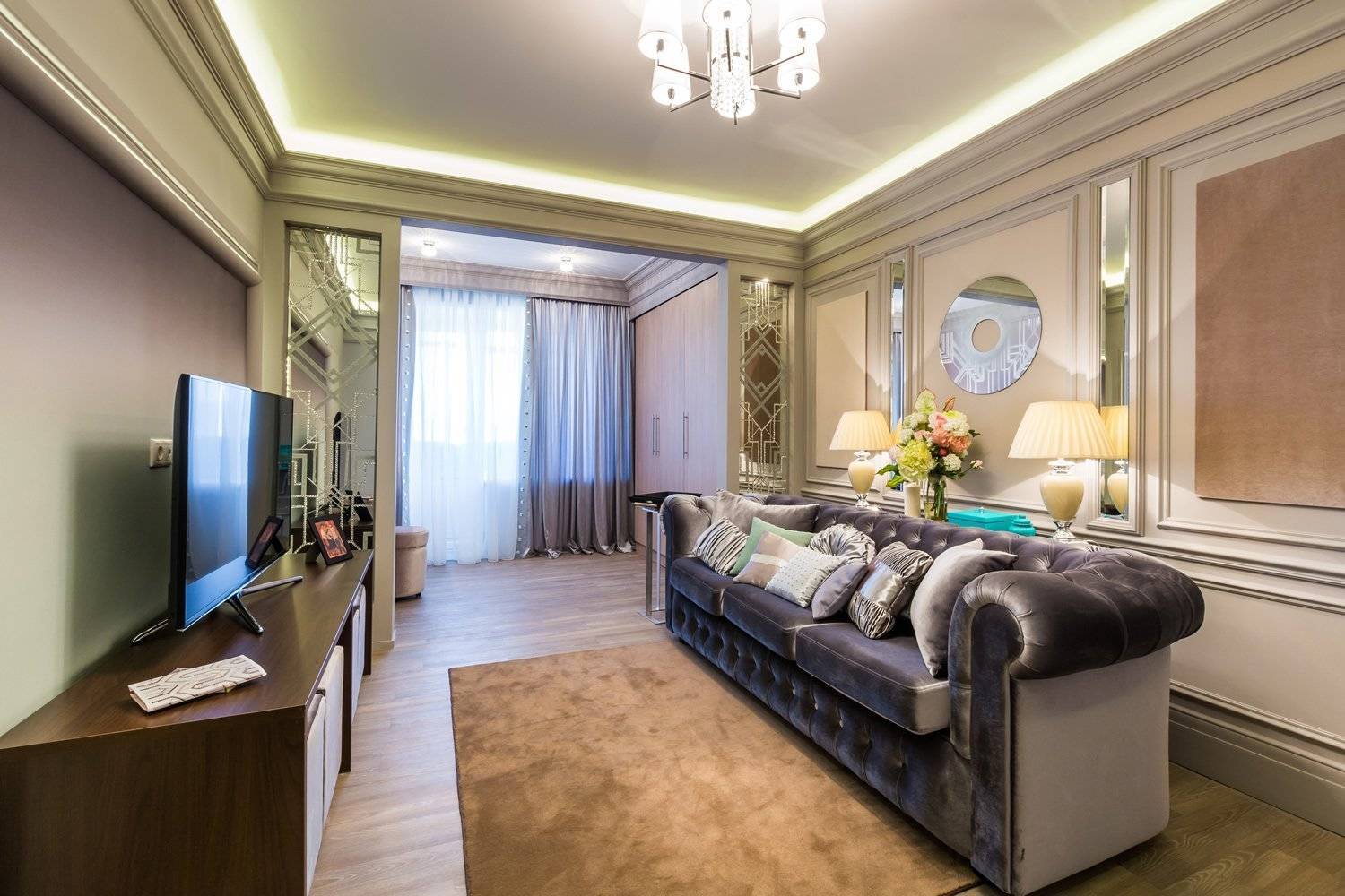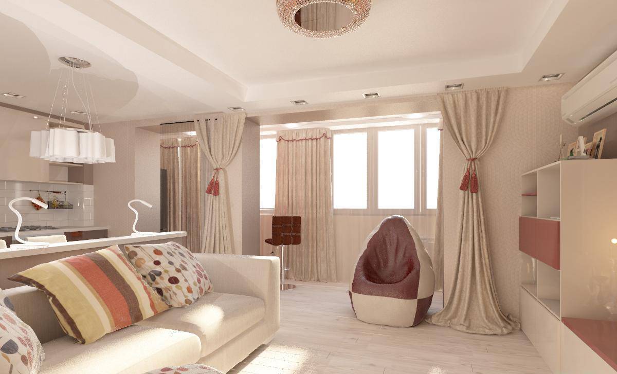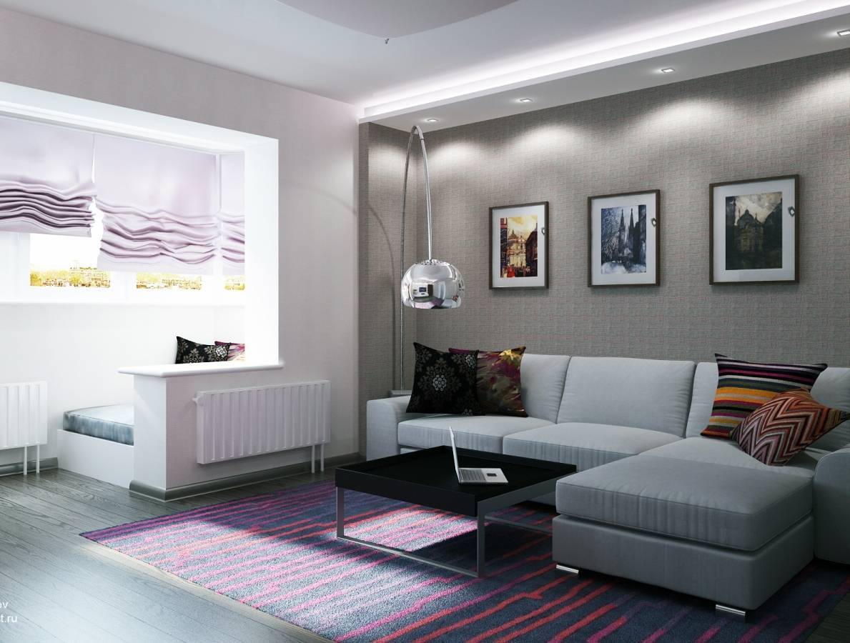 Прием совмещения балконного помещения также удачно используется в планировке квартиры-студии с балконом. За счет дополнительных квадратных метров жилое помещение превращается в единое комфортное пространство.