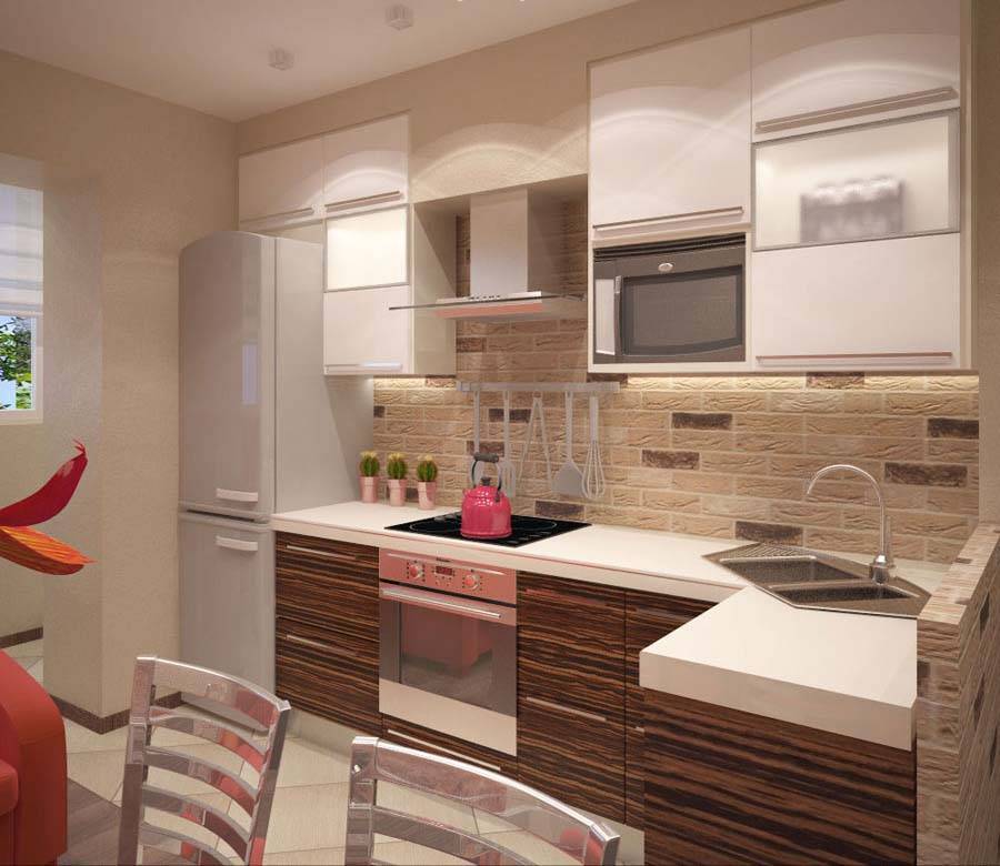 При полном сносе стены образуется единое пространство кухни со столовой. Ели нет такой возможности стену возможно разобрать частично, образовав достаточно широкий проход, либо оставив нижнюю часть под окном, которую в дальнейшем используют как дополнительную поверхность со столешницей, а также зеленую перегородку из комнатных растений.