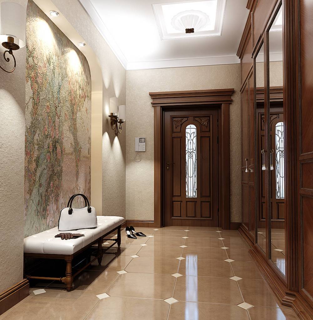 Если с 1 стороны коридора у вас зеркальный шкаф, вся остальная отделка должна быть однородной т.к. любые усложнения умножатся на 2.