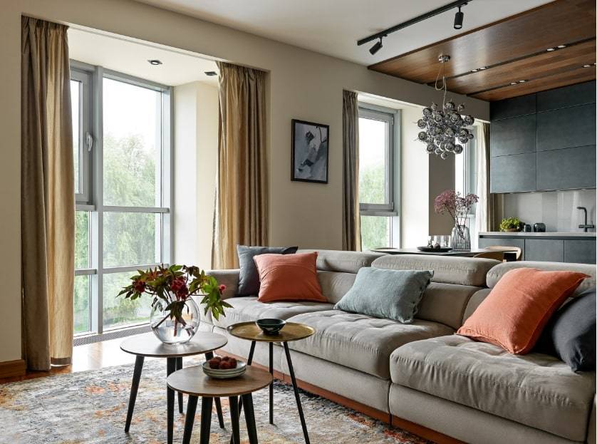 Такой выбор устроит арку, эркер, угловые и двойные окна. Просторная комната ещё больше расширится, а маленькая – обретёт уют и домашнее тепло.