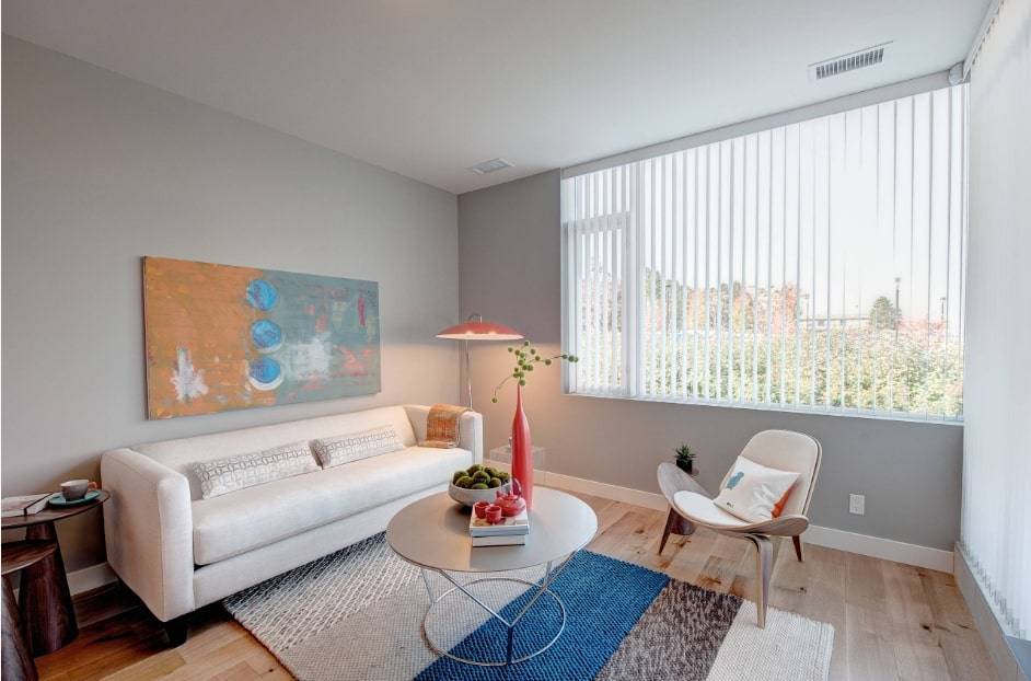 В оформлении современной гостиной нередко используются римские шторы. В основном они имеют среднюю или короткую длину, буквально до половины окна. Ткань для этого используется легкая, благодаря чему формируются полукруглые складки. Одним из главных преимуществ данного решения является возможность регулировать количество света, который попадает в комнату. Это очень удобно, особенно в случае, если вы живете на солнечной стороне.