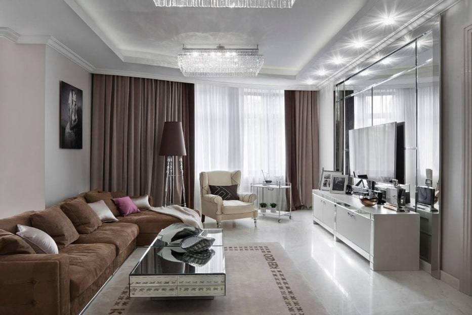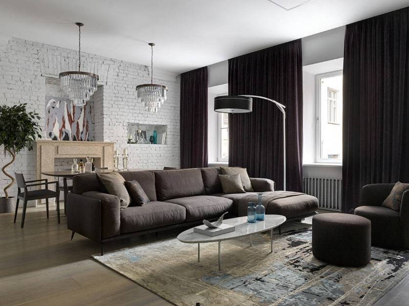 В любом случае, при выборе стоит учитывать не только стилистическое решение, но и степень освещенности гостиной.
