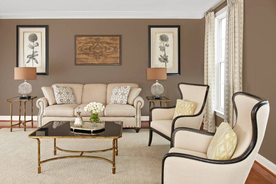 - коричневая расцветка выделяется насыщенностью и торжественностью, подходя к деревянной меблировке и отличаясь солидностью;