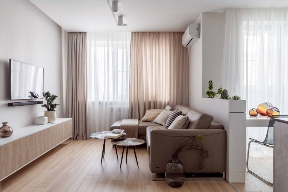Как видите, в 2021 году актуальными стали совершенно разные шторы. В зависимости от выбранного оттенка и материала, они создают необходимый эффект в интерьере гостиной.