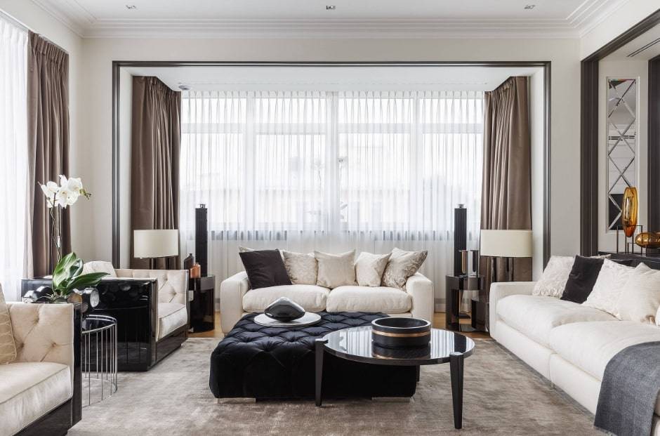 Стильные тенденции драпировок красивого тюля в интерьере гостиной: