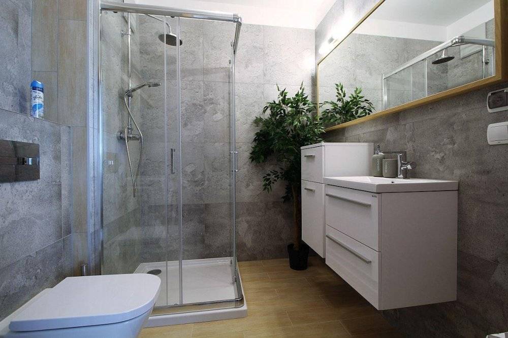 Продумайте, где расположить сантехнику. Если хотите поставить душевой уголок, помните, что наиболее удобный размер зоны с кабиной – 90*90 см. В очень маленьких комнатах можно поставить душевую 75*75 см. Меньший размер кабинки будет неудобным.