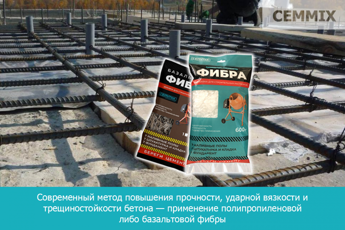 В качестве армирующей добавки выступает фиброволокно (12 мм) из 100 % полипропилена без содержания олефинов SikaFiber PPM-12. Широко применяется для устройства несущих конструкций, дорожек, огнестойких стен и полов, резервуаров. Также можно подобрать гидроизоляцию и упрочняющие присадки, пигменты с водоотталкивающими свойствами.
