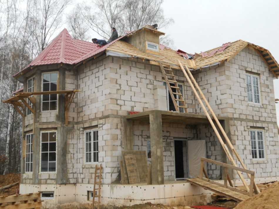 Не забывайте о таком важном моменте, как армопояс – вопрос, как построить дом из газобетона, без него будет решен неправильно. Что же касается непосредственно самой крыши, то при ее монтаже предпочтение лучше отдать легким кровельным материалам.
