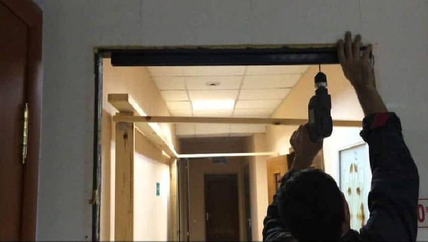 Шаг 1: долой старые двери. Первоначально необходимо демонтировать старую дверь. Снимаем с петель створку и переходим к демонтажу коробки. Зачастую, старая дверная коробка мешает монтажу новой раздвижной двери. Выполняйте все работы по извлечению дверной коробки аккуратно, чтобы не повредить углы и стены.