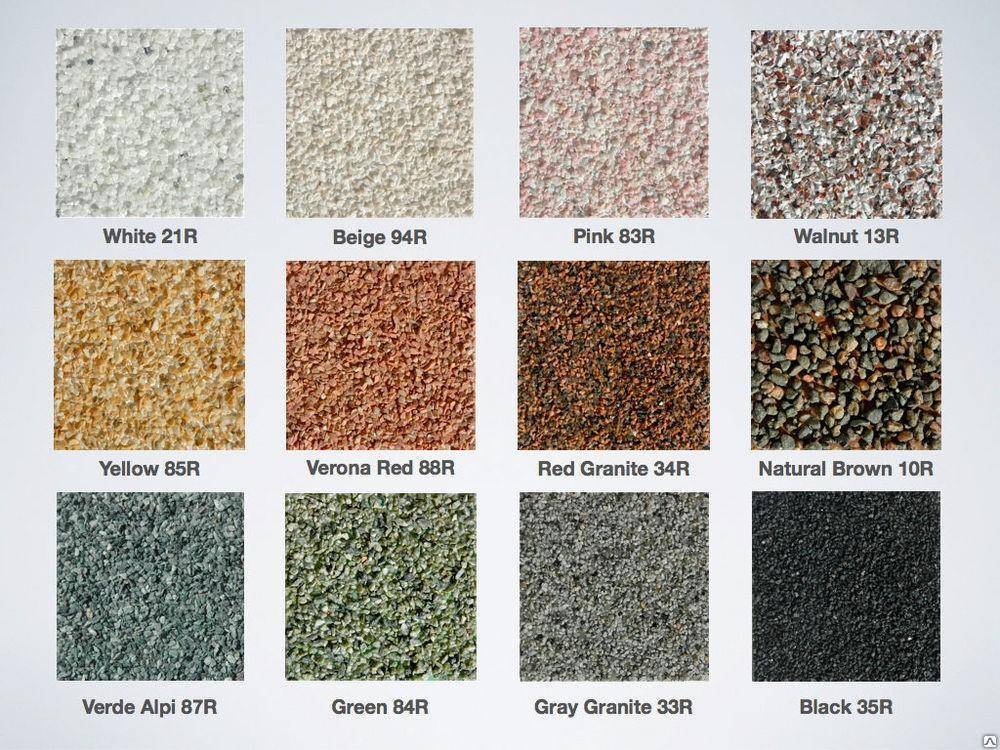 По тому же принципу цветовой сочетаемости подбираются минеральные наполнители – песок и каменная крошка.