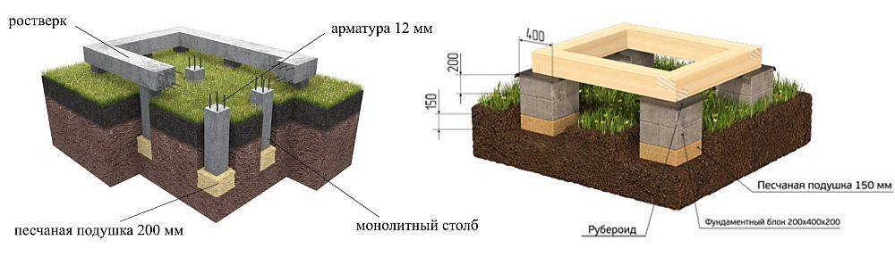 Столбчатые фундаменты могут различаться глубиной закладки. Принято выделять: