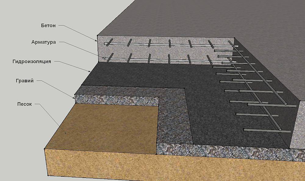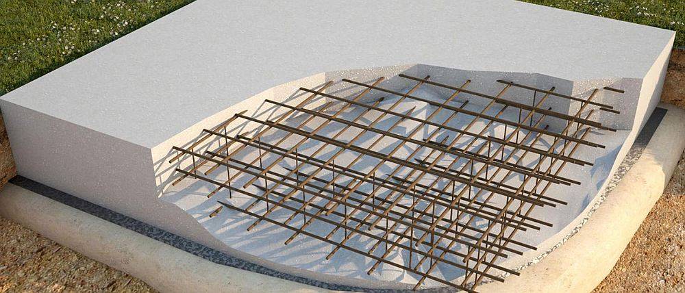 Непосредственно бетонная плита с предварительно уложенной арматурной сеткой