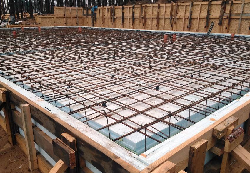 - по периметру основания необходимо оснастить ребра жесткости не меньше, чем 30×30 см. Они станут основанием под несущие стены;
